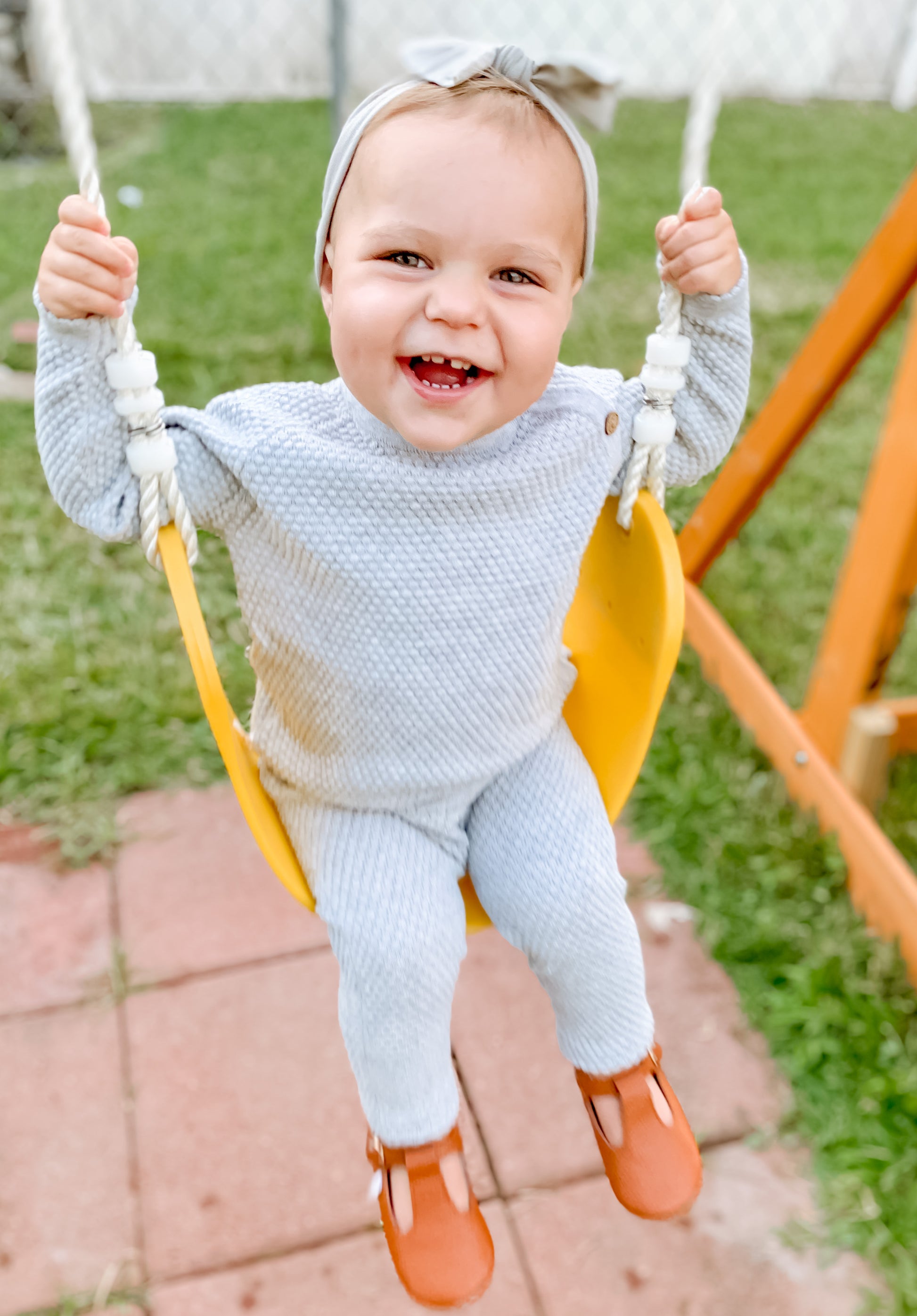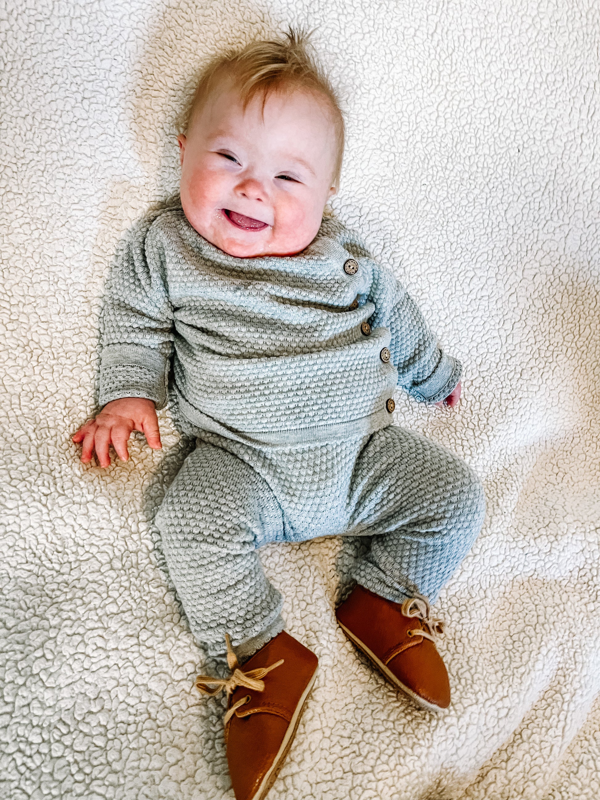Soft sweater material with wood button detailing