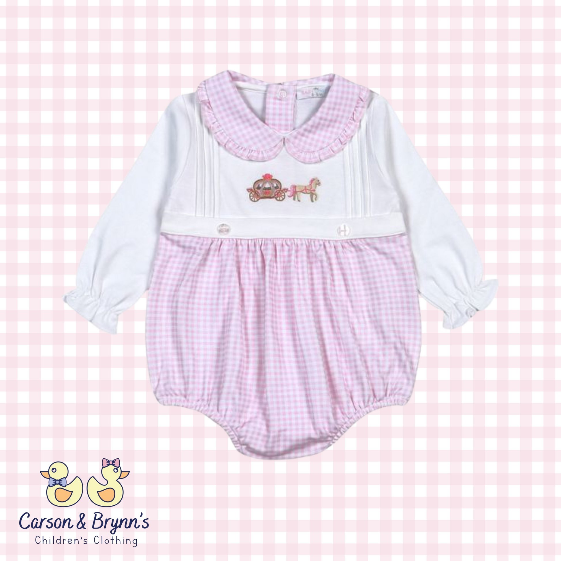 Baby Loren Pink Princess Carriage Embroidered Bubble