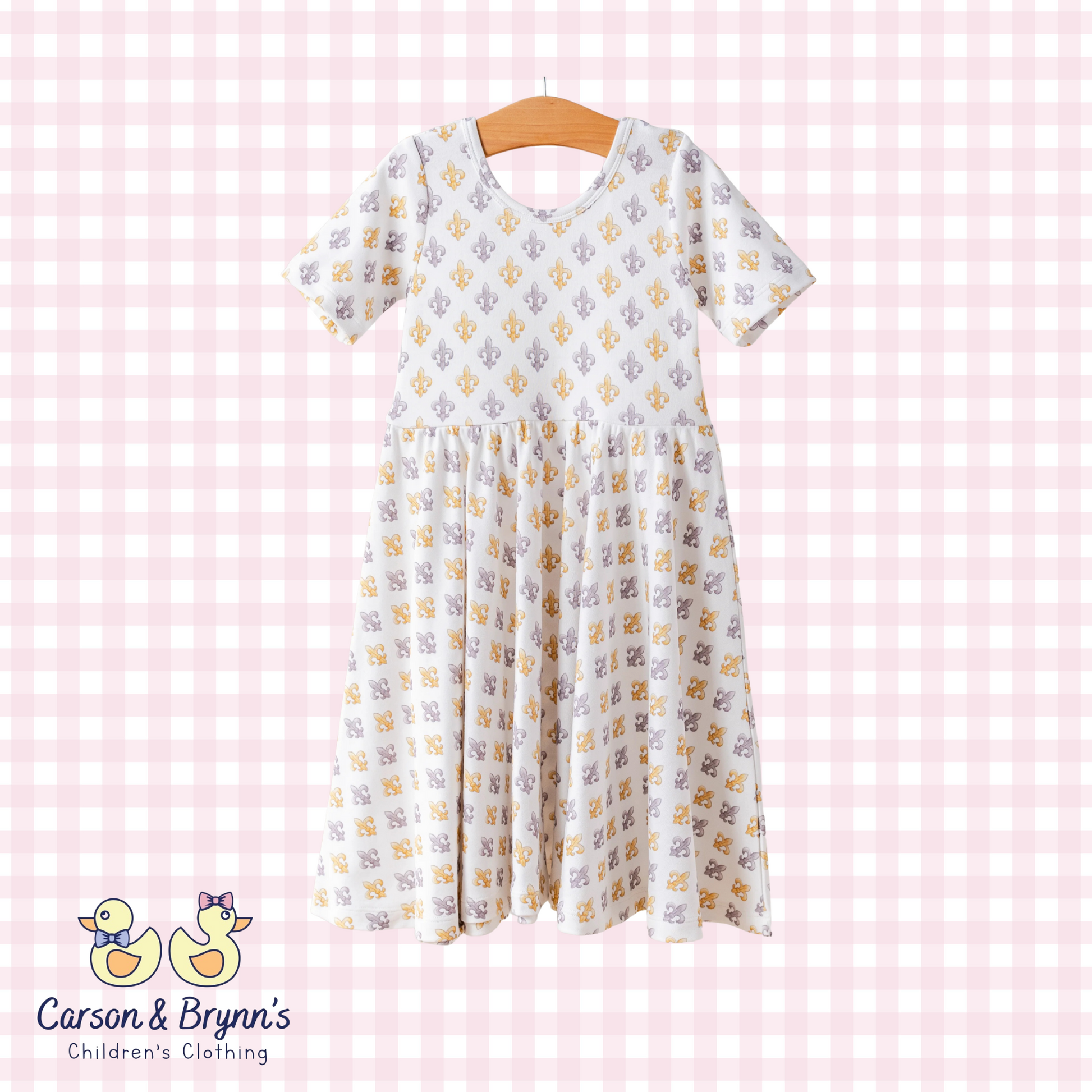 Black & Gold Fleur de Lis Organic Cotton Twirl Dress