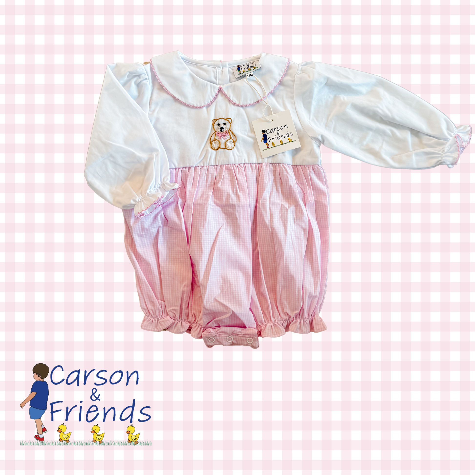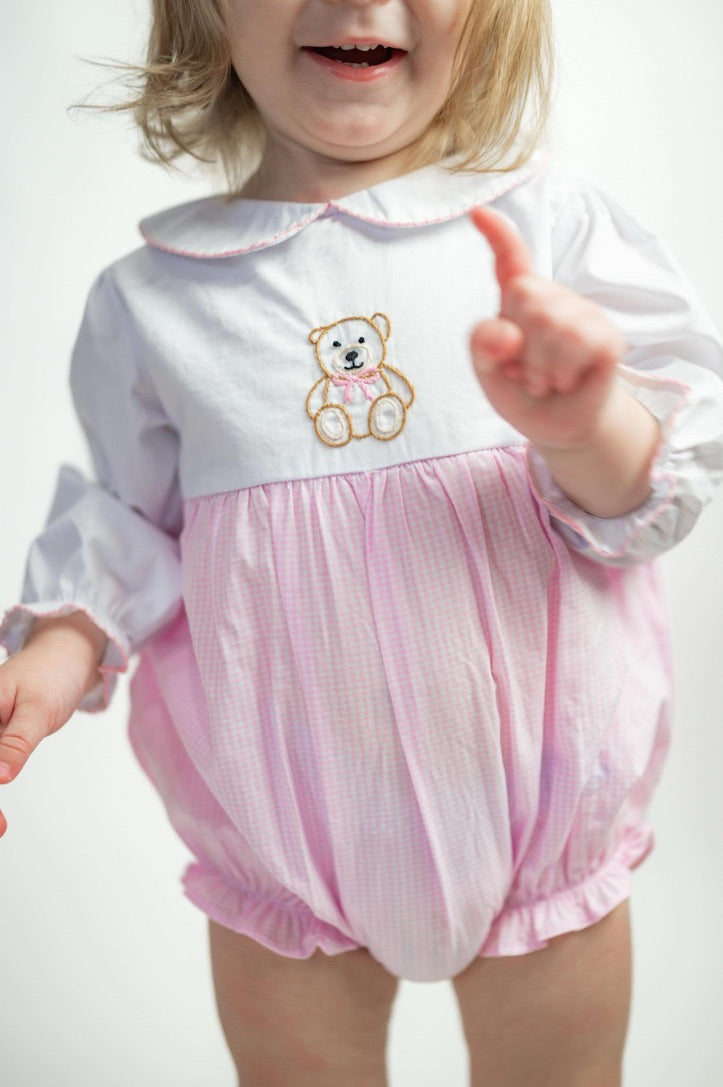 Carson and Friends Hand Embroidered Teddy Bear Bubble- Pink