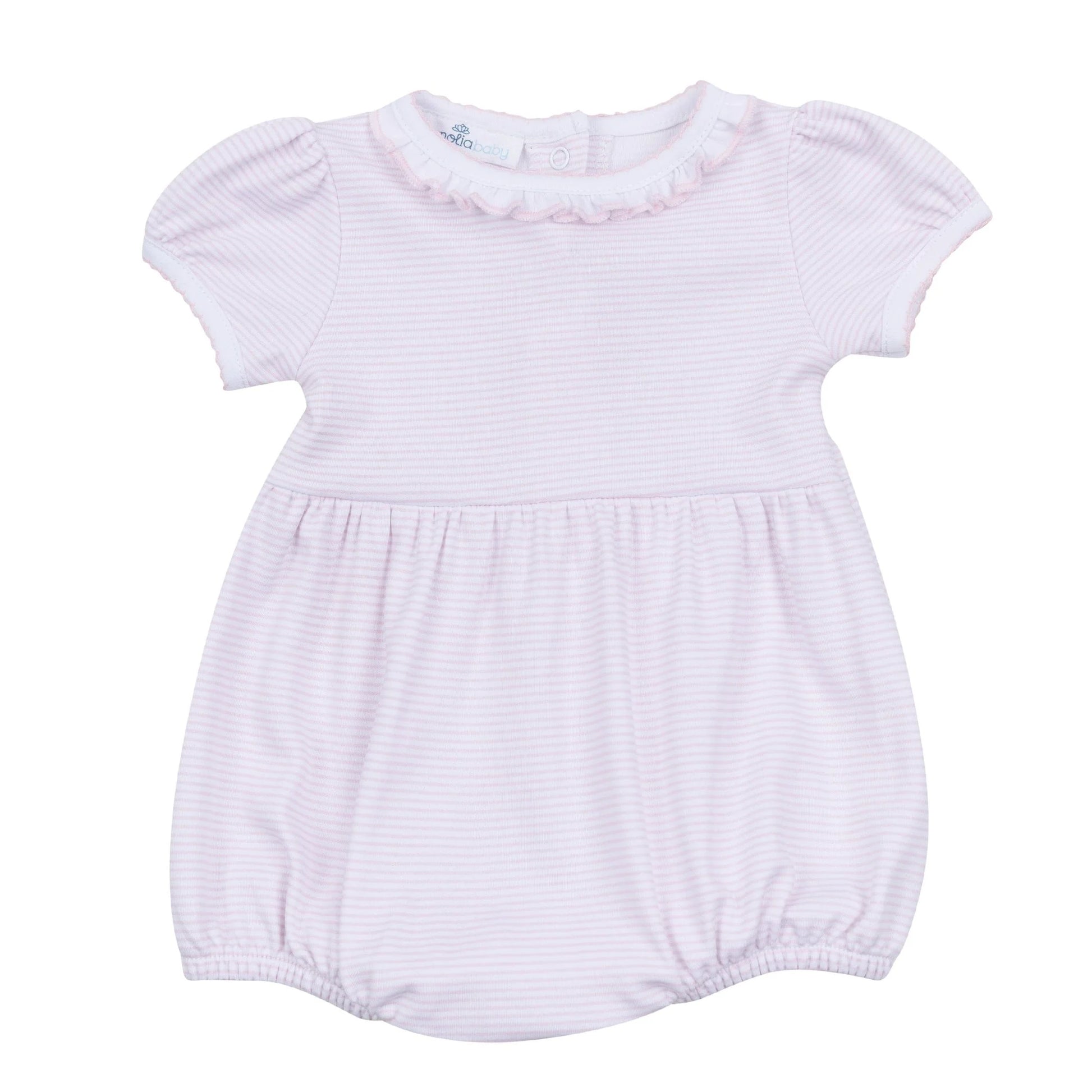 Mini Stripes Ruffle Short Sleeve Bubble - Pink